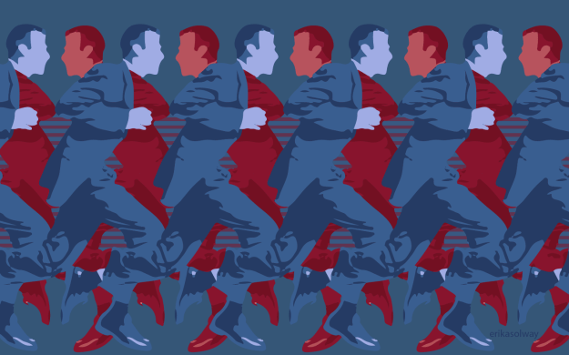 This loop forms a perfect machine, where the production of the present, the future, and the past are all geared towards a transcendental moment, and the irony of the capitalism in perfect stasis takes the form of exhausted action movie tropes: the banal reproduced desires paraded out by the market for mass consumption.