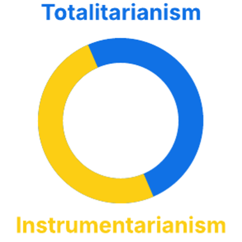 During the Biden administration Zuboff sought to conceptualise the foregoing challenge to liberal democracy.[vi] Yet this episode in the history of populism was still explained in terms of instrumentarian power, a research program described as the “unified field perspective”. Surveillance capitalism had become the meta-crisis afflicting all republics. It was the fundamental source of de-democratisation—Huxley’s dystopia begetting Orwell’s.